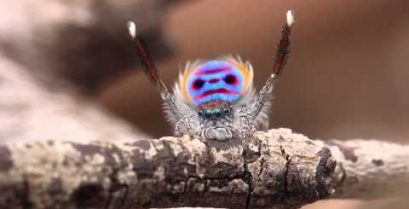 Asteio montáž kde pavouk Páv (Létající ryba Maratus) tančí v rytmu známého tracku 'YMCA'.