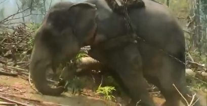 Video, které vysvětluje obsedantní výcvik slonů v Thajsku, s ohledem na jejich využití v dopravě dřeva a cestovní ruch.