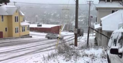 Auto na zasněžené vozovce v Michiganu, začne klouzat na sněhu. To zabrání aby se otočte vlevo;
