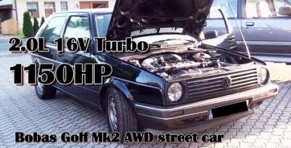 Starý dobrý Golf MK2 z roku 1983, vybaven 16V motorem a 1150 hp, což mu dává nehoráznou akceleraci.