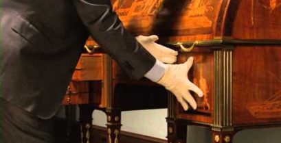 Tvůrčí talent David Roentgen jsou patrné v této mimořádně rafinované stůl. Monogram DR vykládaný pod otvorem na spodní zásuvce naznačuje spokojenost truhláře s jedním z jeho nejvíce mechanicky vynalézavých [...]