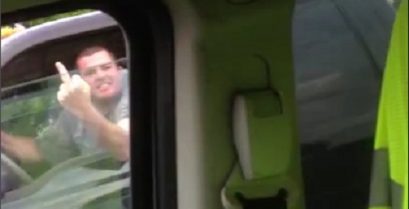 Podrážděný řidič, který zůstává 'přilepená' na dlouhou dobu v autě vpředu a cheironomei, Nakonec to trvá, co si zaslouží.