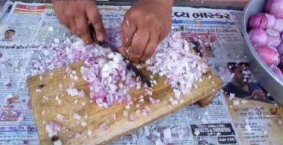 Nakrájenou cibuli v rekordní rychlosti, od mistra kuchaře v indické způsobem.