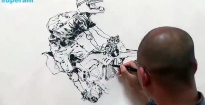 Korejské malířky Kim gi jung vytváří úžasnou skici, v návrhu sestavy, který byl v Číně.