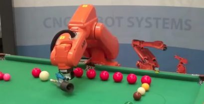 Robotické rameno společnosti ABB v show přesné pohyby a dovednosti na kulečník.