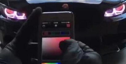 Video, u kterého není mnoho informací, v němž vidíme někoho Změna barvy světlomety BMW M3 pomocí aplikace na iPhone. Velmi působivé, ale nelegální.