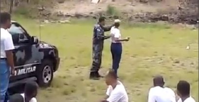 Policejní akademie v Rio de Janeiru v Brazílii, žena výcvik v házení granátem. Nebude zcela, házet granát špatným směrem vytvořením panika, ale později se směje z jejích kolegů po jedné [...]