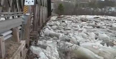 zničit led most pohybuje téměř 2 m, ve městě New Brunswick, Kanada.