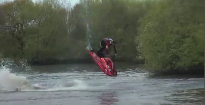 Šampion ve freestyle lyže jet, ANT Burgess, dělat neuvěřitelné skoky a otáčení 360 ° ve vzduchu s jeho skútr.