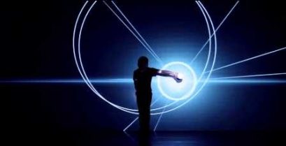 Japonské Yusaku Mochizuki, Člen skupiny umělců ENMS, podává působivý výkon s diabolem synchronizovaným s obrázky z 3D projekcí.