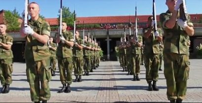 Četa ukázky z královské norské stráž, v dokonalé synchronizaci a harmonie.