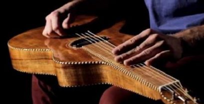 Hudebník Thomas Oliver nádherně interpretuje hudební téma slavného filmu 'Jurský park' ve Weissenbornu., druh kola slide kytara.