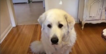 Nana, psí plemeno velké Pyreneje, je obtížné zachytit ve vzduchu potraviny mouchy svého šéfa. Bude spravovat;
