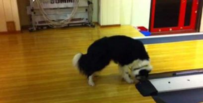 Psa kontroluje dráhy bowlingu