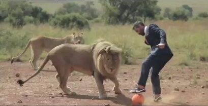 Zoolog Kevin Richardson hraje fotbal s lions, která se rozrostla.