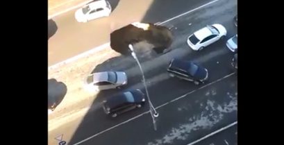 V Rusku města Ťumeň, Asfalt je náhle zhroutí do obrovské závrt uprostřed provozu. Eroze vytváří velkou díru, kvůli špatné konstrukci vozovky.