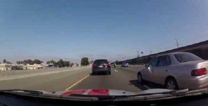 Řidič je přejíždění a brzdění, nebezpečně se snaží způsobit nehodu na dálnici.