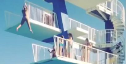 Lávové horké prameny Park, v Idahu (Spojené státy americké), mladá dívka váhá na poslední chvíli skočit z výšky skokanský můstek 7 metrů. Snaží se držet zábradlí, ale spadne a jednoho narazí [...]