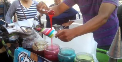 Centru města Guadalajara v Mexiku, Prodávající neobvyklé 'sladkosti' přitahuje mnoho zákazníků. Škrábanců velké pagokolwna a pak umístí drceného ledu v kónické hrnci. Malou dřevěnou tyčí se vytahuje [...]