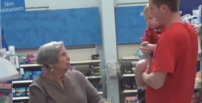 Během žert v supermarketu, někdo říká, že v starou dámu 'máte něco ve vlasech', tahání dítěte zezadu... Její reakce je velmi legrační.