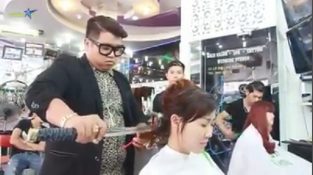 V Viet Nam, Kadeřník Nguyen Hoang Hung používá japonské meče (Katana) Chcete-li snížit vlasy zákazníků.
