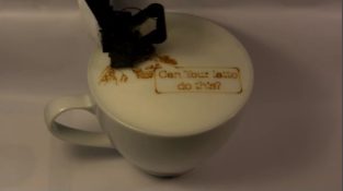 Společnost OnLatte vyvinula speciální tiskárnu, která používá karamelizovaným cukrem pro tisk obrázků a kreseb na kávu. Tiskárna je stále ve fázi výstavby a není komerčně dostupné.