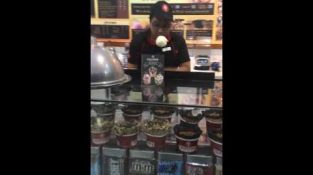 Příprava zmrzliny v hlavním městě Dauhá, Katar, s originálním.