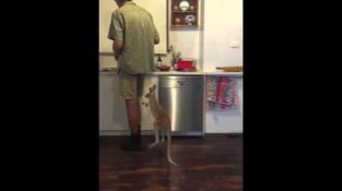 Klokan baby obešel jeho správce a uchopil na jeho nohu prosit o mléko. Jeho správce, Nicméně, ignoroval jeho prosby a pokračující míchání mléko, až byl připraven.