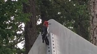 Muž v Rusku snaží chránit svůj vůz před silným krupobitím, v jistém smyslu paradoxní.