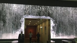 Působivé vodní video stěny v hale budovy v San Franciscu, Spojené státy americké.
