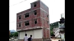 Celá budova se zhroutí do řeky po nedávné velké záplavy v Číně.