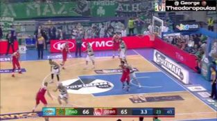 Trojka D.Diamantidis a V.Spanoulis v Panathinaikosu - Olympiacos 66-68 (1-1)