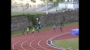 Usain Bolt na 200 metrů závodu v roce 2004, když mu bylo pouhých 17 let. Jeho čas byl 19,93 sekundy, první světový rekord.