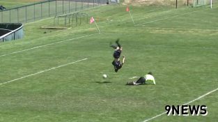 Při fotbalovém utkání mezi studenty středních škol ThunderRidge a Columbine ve Spojených státech, hráč dosáhl pěkné akrobatické cíle. V druhé polovině, hráč Dylan Prichett-Ettner Columbine zhluboka přihrávce [...]