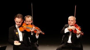 Komediální skupina hudebníků „Mozart Group“ z Polska předvádí legrační akt s míčkem a pingpongovou raketou, live show.
