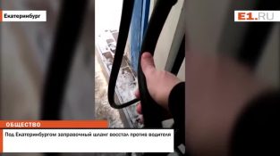 Trubka benzinová pumpa je zmrazen od teploty od-35 ° u čerpací stanice v Jekatěrinburg, Rusko.