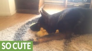 Tyto nadýchané mláďata se nikdy nebudete muset starat o nepřátele s velkým strážce a okolí! Podívejte se na tohoto psa s láskou obejmout je. Roztomilost přetížení!