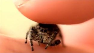 Hlazení mého Phidippus Adumbratus Jumping Spider