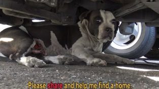 Pit Bull s krvácivými nádory odevzdá záchranáře a pak dává mu pusu :-)