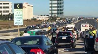 Na dálnici v Kalifornii, přišel muž z auta s pistolí v ruce, zatímco obklíčen policií. Byl zastřelen