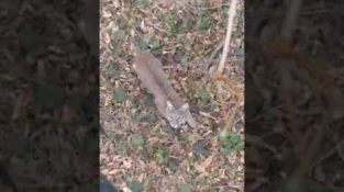 Lovec splňuje rysa na stromě
