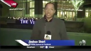 News reportér Joshua Short zhasne na kotva zpráv poté, co stát v chladu na Černý pátek