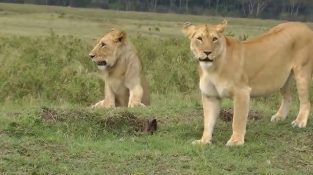 To mongoose neváhá napadnout dva lvi přecházet v blízkosti hnízda.