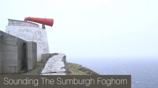 Roční Foghorn znějící na Sumburgh Maják, Shetland.Brian Johnson spouští vznětové motory Kelvin K-Series z roku 1951 o výkonu 44 k. Motory pohonu kompresorů Alley a Maclellan, což, pohánět Foghorn.