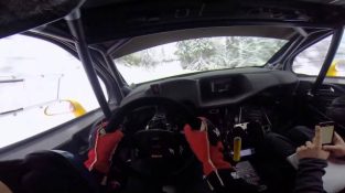Vzrušující záběry z místa řidiče, v závodě Rally v zasněžené krajině. Za volantem je norský jezdec Anders Grondal.