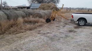 Teaser trailer speciálně konstruované pro nakládání balíků sena.