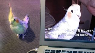 Ο Lucky, Malý papoušek napodobuje iPhone vyzvánění při rozrušení, reaguje ve svém vlastním přehrávání videa na notebooku. Jen slyšel jeho hlas na videu, blížící se počítač a [...]