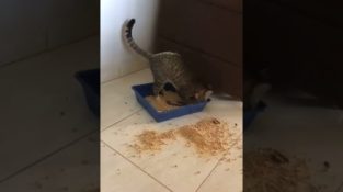 Kočka otočí zásobníku písku stejně jako nutnost, ale nezdá se, že pochopili svůj omyl a opakování.