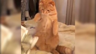 Nad rámec posuvnými dveřmi, dvě kočky pohybující se v opačných směrech musí najít řešení, aby nespadly…