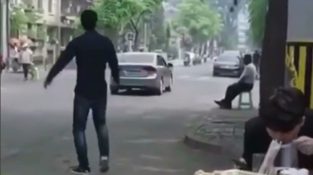 Muž kope plastovou láhev zpět do své majitele, který ji hodil přes auta. Video se zdá být editace, ale je to docela úspěšné.